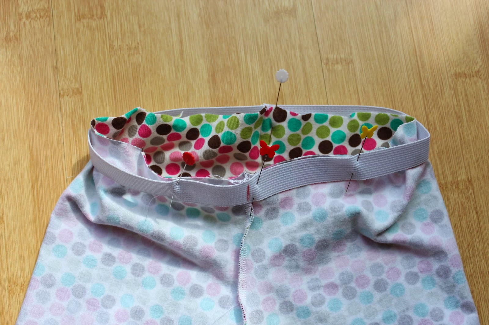 Fold the elastic to the inside and sew a zigzag stitch along the bottom edge of the elastic/fabric.
